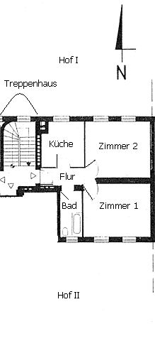 2. Obergeschoss, Hinterhaus, Grünblick, Holzdielen, gefließtes Bad und Küche, neue Einbauküche.