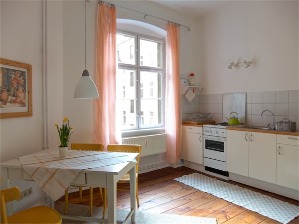 kpl. mit Geschirr, Bettwäsche, Handtüchern Bett 140 cm, Sessel, Esstisch m. 2 Stühlen Geräumige Wohnküche mit Kühlschrank, Spüle Großzügiges Wannenbad u. Waschmaschine Color-TV mit Kabelanschluß abgezogene Dielenfußböden Zentralheizung,) verkehrsgünstig und zentral gelegen/ Nähe U-Bhf.Südstern Telefonanschluß (AB) möglich