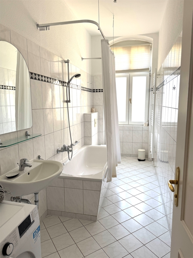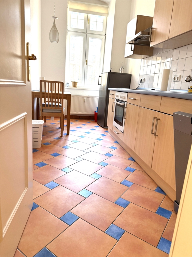 Die separate Küche bietet ausreichend Platz für einen Essbereich und ist funktional ausgestattet. Das Badezimmer verfügt über ein Fenster sowie eine Badewanne mit Duschmöglichkeit.