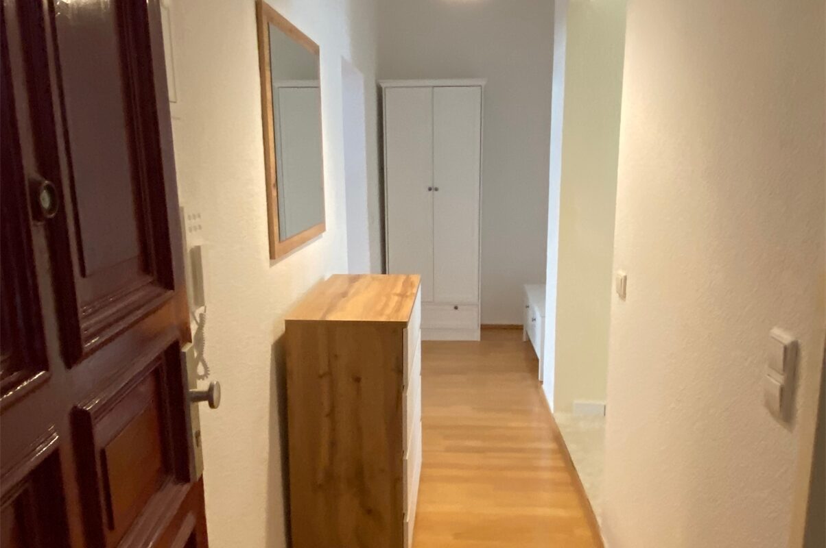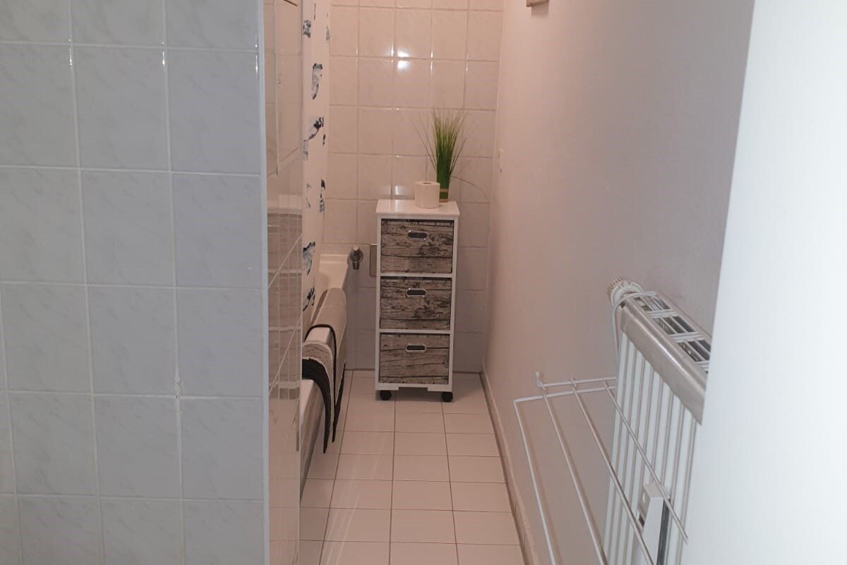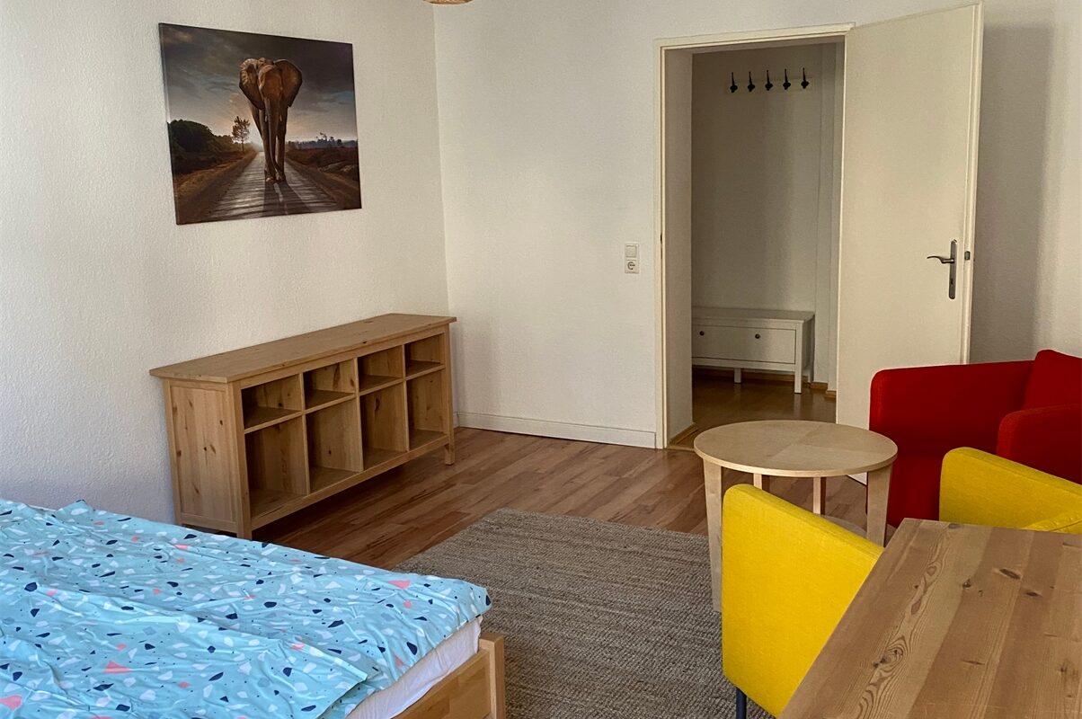 Diese Altbauwohnung wurde gerade neu möbliert und bietet ein gemütliches Ambiente mit einem Doppelbett und Sitzmöglichkeiten für einen ruhigen Fernsehabend ein. Das Bad ist mit einer Badewanne ausgestattet.