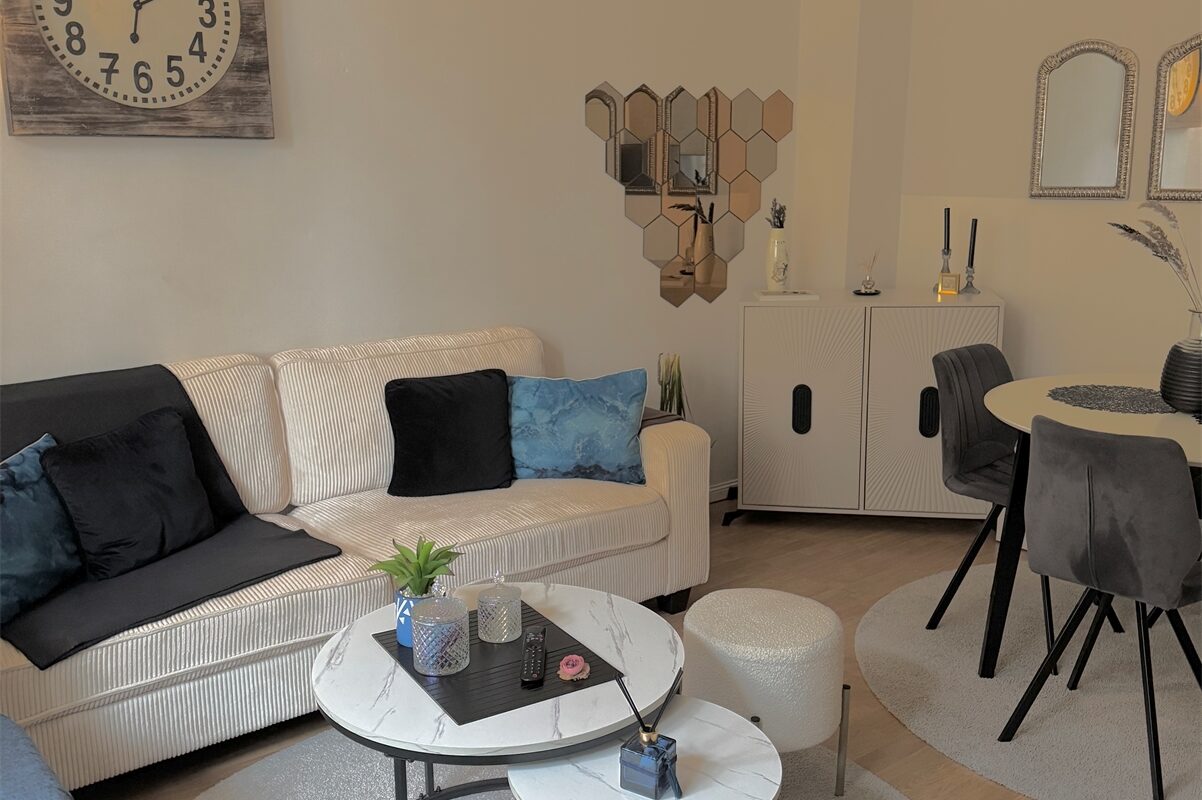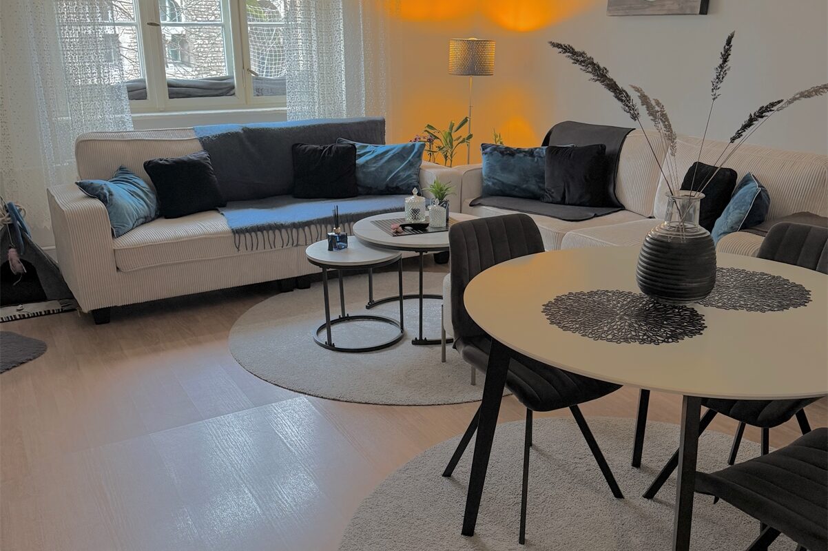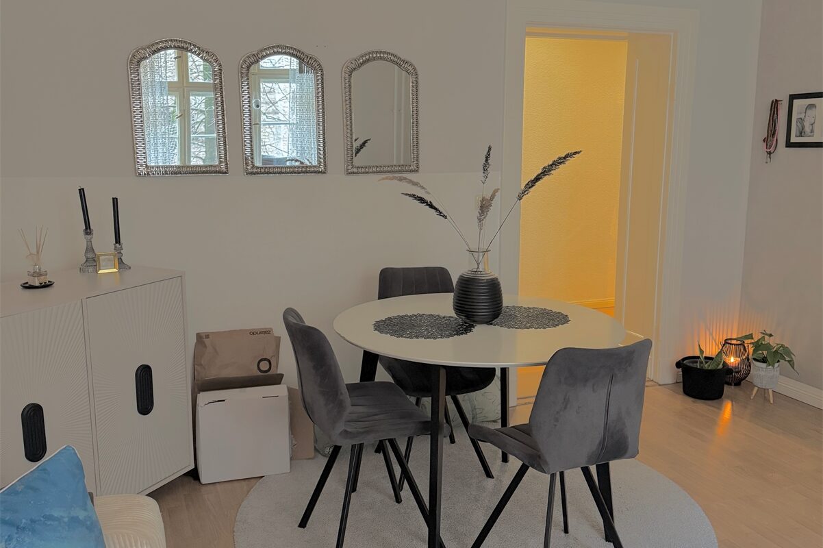 Der Wohnbereich ist großzügig geschnitten und bietet ausreichend Platz für einen kombinierten Wohn- und Essbereich. Große Fenster sorgen für eine gute Tageslichtversorgung und schaffen eine freundliche Wohnatmosphäre. Die Raumproportionen erlauben eine flexible Möblierung.