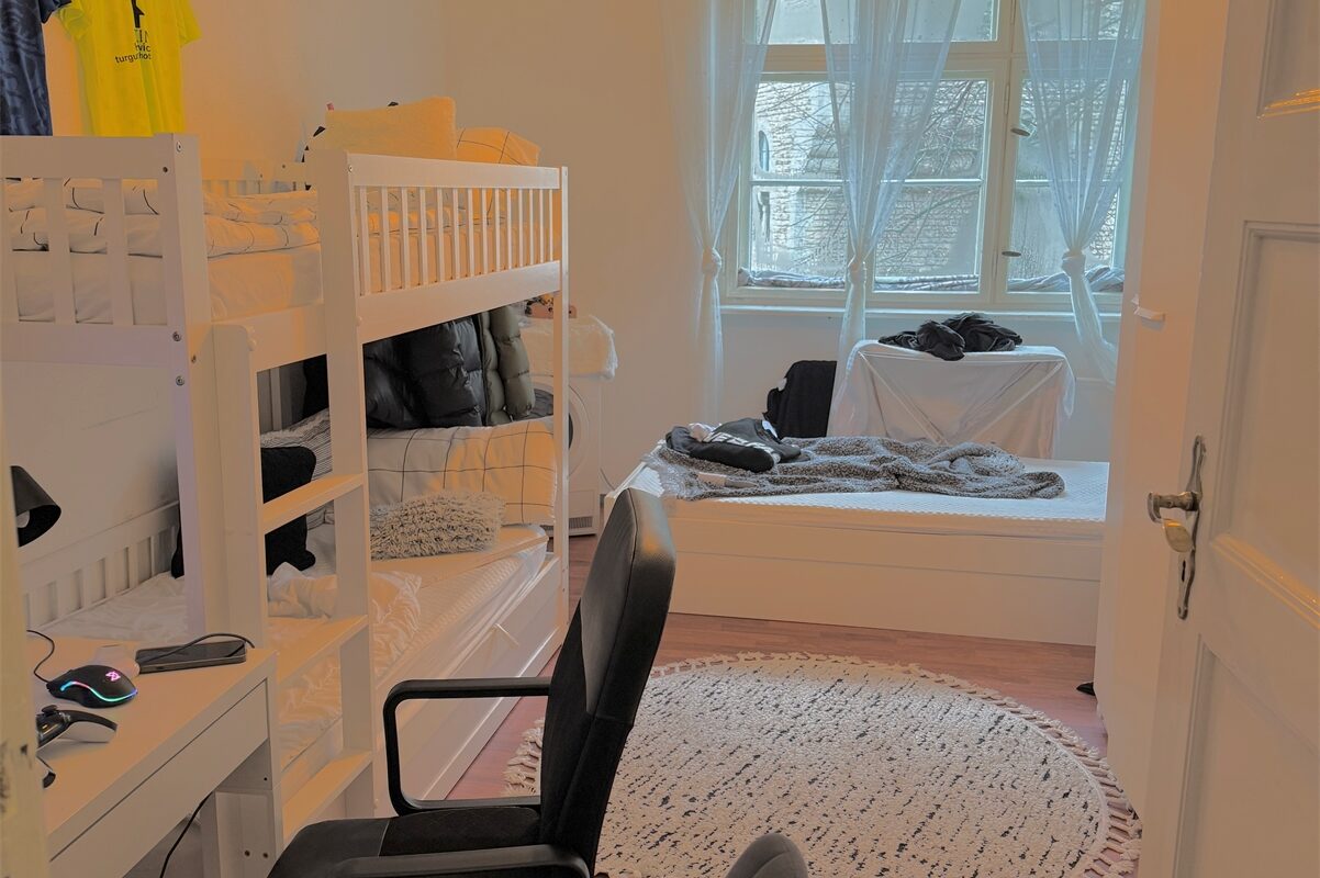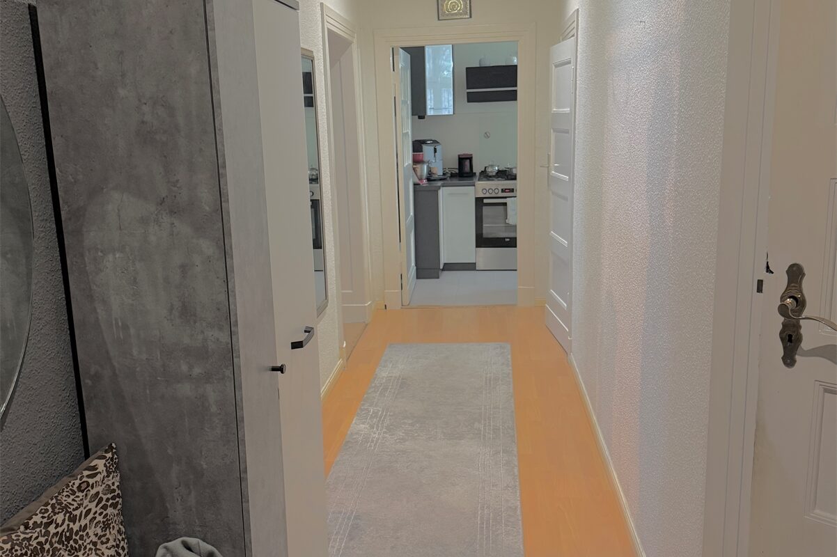Die beiden weiteren Zimmer sind separat begehbar und eignen sich als Schlaf-, Kinder-, Arbeits- oder Gästezimmer. Der zentrale Flur verbindet alle Räume ohne Durchgangszimmer und unterstützt eine klare Trennung der Wohnbereiche.