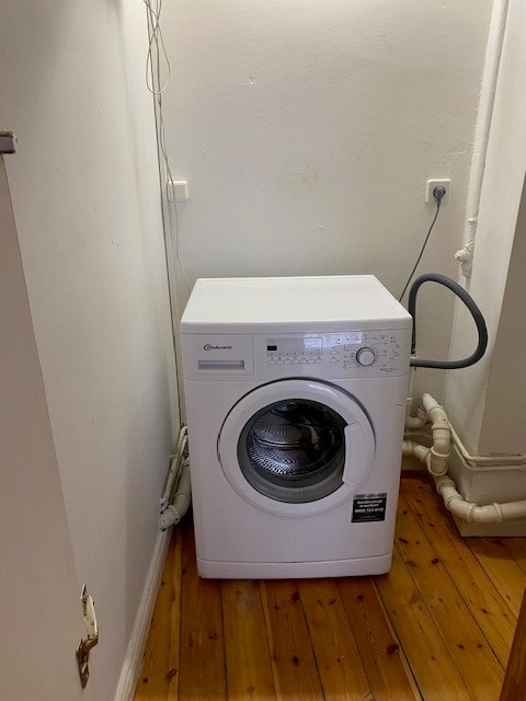 Im Flur befindet sich ein abgetrennter Abstellraum in dem sich eine Waschmaschine befindet.
